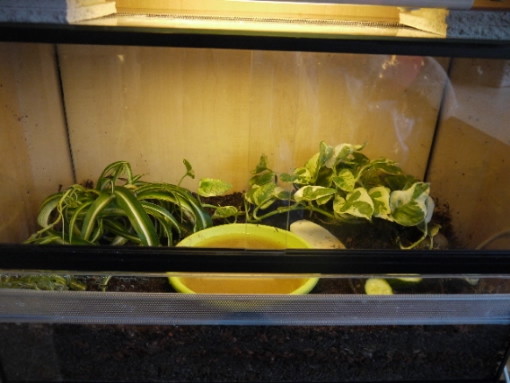 Bodengrund: kräftig aufgekalkter Kokoshumus mit Terrarienmoos und feiner Terrarienrinde gemischt, ca. 10-15cm hoch