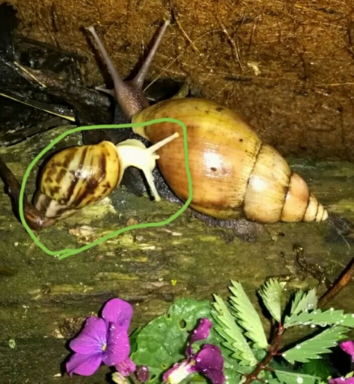 Achatina fulica und drei Achatina reticulata. Bekommen habe ich alle Schnecken unter