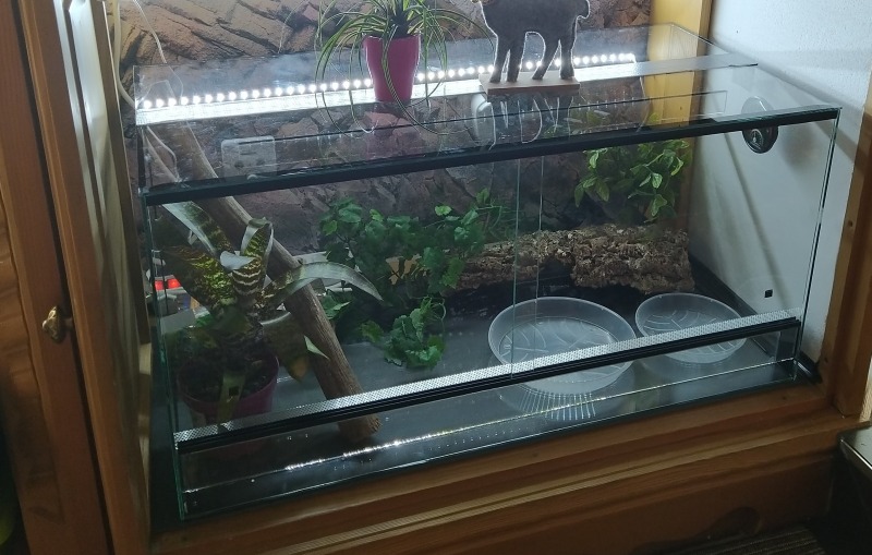 Das Terrarium hat zwei Schiebetüren an der Vorderseite. Nun habe ich mich gefragt wie