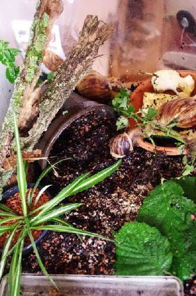 Ich habe nun Pinienborke, Seramis und Muschelgrit gemischt und es duftet regelrecht nach Urwald und Nordsee in einem. Die Schnecks finden es allesamt toll - wobei sie das zuvor ja auch schon fanden.
