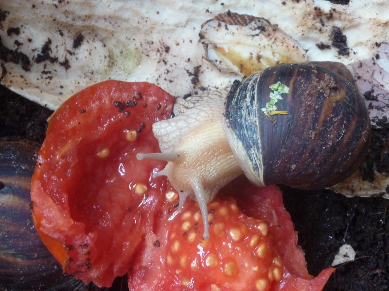 Achatina Achatina brauchen 29°C Tags, 24°C nachts, sehr feuchten Bodengrund, LF 90%. Sie sind kaum zu sehen, da sie sich viel vergraben und erst spät aktiv werden, es sind eher ruhigere, aber empfindlichere Tiere und wachsen sehr langsam.