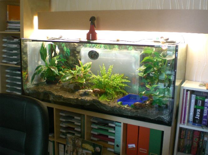 Die Pflanzen sind übrigens schon angeknabbert. Vor allem die Spathyphyllum in der linken Ecke wird nicht lange so aussehen... Mal sehen.