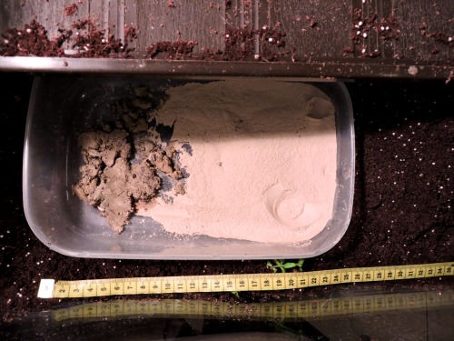 Nebenbei entsteht durch die Badeschale ein besonderes Klima. Die Schnecken können also verschieden warme und verschieden feuchte Gebiete im Terrarium auffinden. In der Badeschale befindet sich Heilerde. Sie ist knapp 25 cm lang. Es kann also ausgiebig gebadet werden.