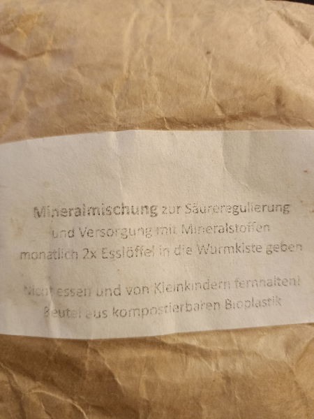 Ich habe nun alles Zubehör was man benötigt, nur leider wurde das Pulver zur Aufkalkung der Erde nicht mitgeliefert, es wird nachgeliefert. Nun habe ich mich erinnert, dass ich von der Wurmkiste noch so was mineralisches habe. Ich habe unten vom Text ein Foto gemacht. Könnte ich das in die Erde mischen und wenn ja, wie viel? Ist echt dumm, wegen dem fehlenden Pulver kann ich jetzt nicht anfangen alles besser einzurichten . Ich habe jetzt Kokosblocks aufquellen lassen und könnte sie mit der jetzigen Bioerde aus dem Terra mischen.