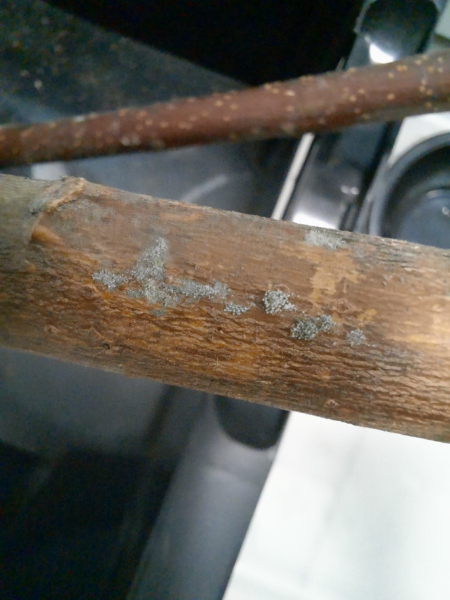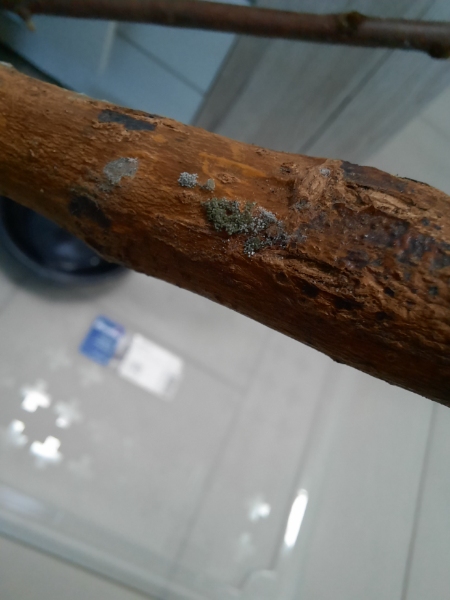 Das Zeug ist auf beiden meiner Äste die ich aus einer Zoofachhandlung gekauft habe. Dort wurde mir gesagt dass diese Haselnussäste für Tropenterrarien geeignet sind und nicht schimmeln. Die Äste aus dem Wald schimmeln bei mir immer irgendwann nur ist der dann weiss. Der hier ist eher grün und habe ich so noch nicht gesehen. :-?