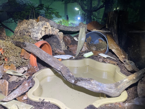 Dein Terrarium ist sehr schön und ovummäßig. Die vielen Höhlen und Stöcke sind bestimmt beliebt. :)