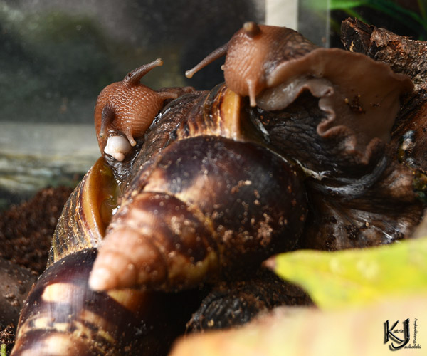 Sie fanden eine Babynacktschnecke .. ich meinte sie sollen sie bloß wieder raus geben (ohne Haus mag ich diese Schnecken gar nicht)