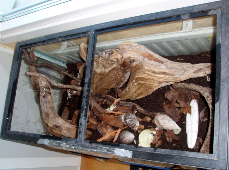 Und hier die Behausung, ich hab einen großen neuen Kletterast reingelegt (war gar nicht so einfach den da rein zu kriegen mit diesem Mittelbalken!), damit die kleinen mehr zu klettern haben.