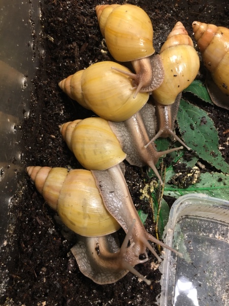 Nun ist es ja doch schon eine Weile her, dass ich hier zuletzt gepostet habe. Leider habe ich nicht nur gute Nachrichten zu berichten, denn inzwischen besteht mein Bestand nur noch aus Miss Lola, Yang, Neggie, Nemo, McNugget, Domino und zwei Kleinwüchsigen Rodatzi, die ursprünglich zu den Abgabeschnecken gehörten. Ihre Namen sin Bertie und Hugo. Slimy und Sneakers habe ich jedoch im Juli und Oktober tot im Terrarium aufgefunden. Sie waren davor schon immer dünner und schwächer geworden, doch leider habe ich keine Ahnung, was der Grund dafür war… :(