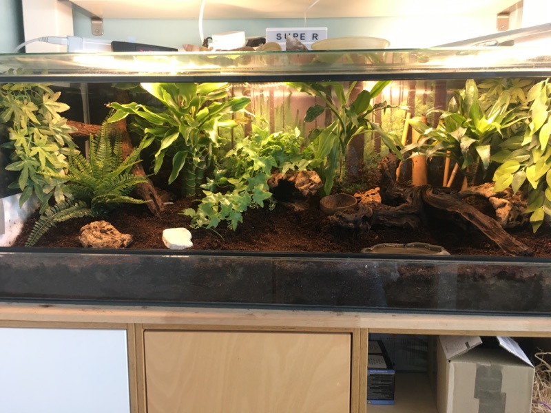 Außerdem musste ich gestern den gesamten Bodengrund des großen Terrariums rauswerfen. Die unteren 3cm davon standen unter Wasser und alles war total matschig und versumpft, da gab es nichts mehr zu retten. Jetzt ist das Terra neu eingerichtet mit frischem Bodengrund. :)