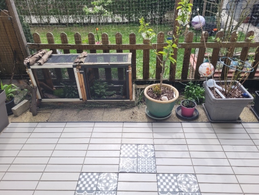 Seit einiger Zeit, wenn es morgens dann 10-12 Grad hat, kommen sie auf die Terrasse und dürfen den Tag dann schon Outdoor verbringen.