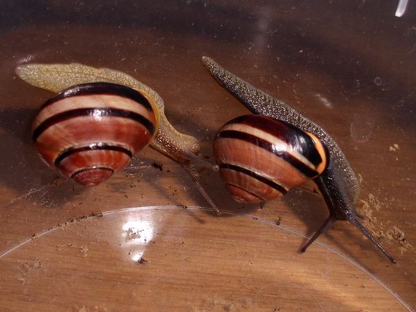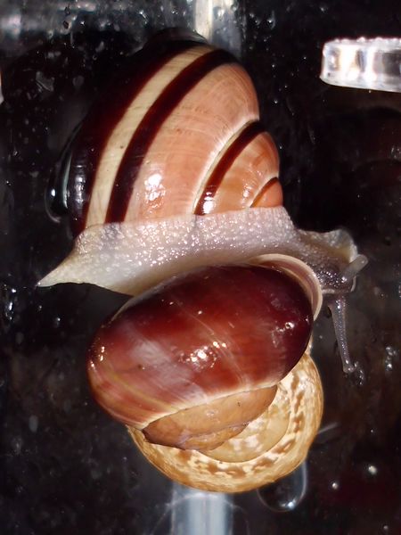 Eine kleine Haarschnecke und zwei kleine Laubschnecken gibt es noch, eine der drei hat ebenfalls ein oder zwei Gelege produziert, eigentlich habe ich die Haarschnecke in Verdacht, das heißt aber nichts. Die sollten jedenfalls auch nur ein kurzes Gastspiel bei mir geben und dann zurück nach Nettetal kommen.