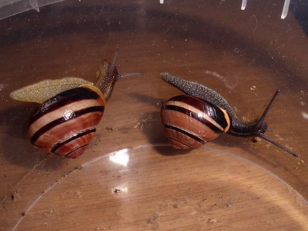Dann beherberge ich im Moment vier erwachsene Schließmundschnecken, interessant zu beobachten, ich wollte sie einfach mal näher kennenlernen (wie ich mich auch sonst mit vielen Krabblern befasse, die meinen Weg kreuzen). Dass die mir eine kleine Baby-Schwemme bescheren, weil sie lebendgebärend sind (und eine Eiersuche daher erfolglos), damit hatte ich natürlich nicht gerechnet. Die Schlingel werden demnächst wieder in ihre natürliche Umgebung kommen. Aber putzig sind die Kleinen allemal, und sicher auch hier interessant, mal ein bisschen von der Entwicklung mitzubekommen. Bei ihnen sind außerdem noch zwei kleine Schnirkels untergebracht.