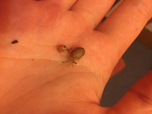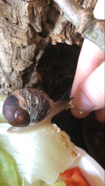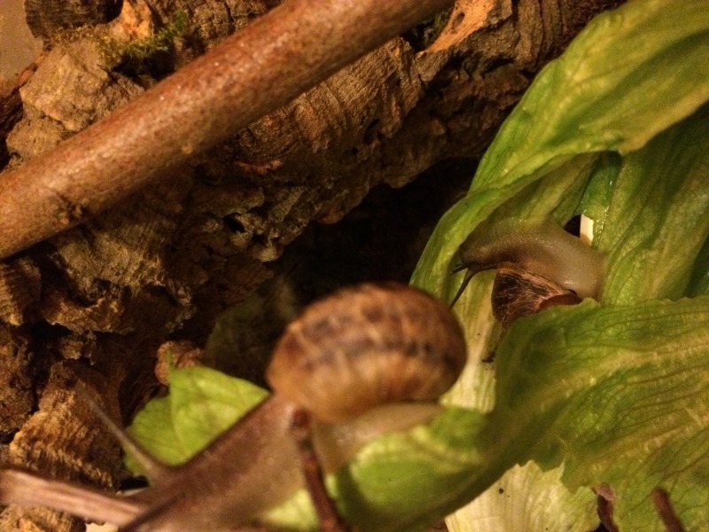 In der kleinen Box sind meine beiden Baby-Cornus wohl auf. Sie sind ja so hübsch - vor allem die ältere, Lissy. Ihr Gehäuse ist dunkel und genauso wie ich mir ihre drei Vorfahren gewünscht hätte ^^. Der kleine - inzwischen hat er einen Namen: Jim (von Jim Knopf) wächst auch prächtig wird aber wohl heller? nuja vllt dunkelt er noch nach aber so wie es jetzt aussieht habe ich zwei sehr verschiedene gesunde junge Schnecken da