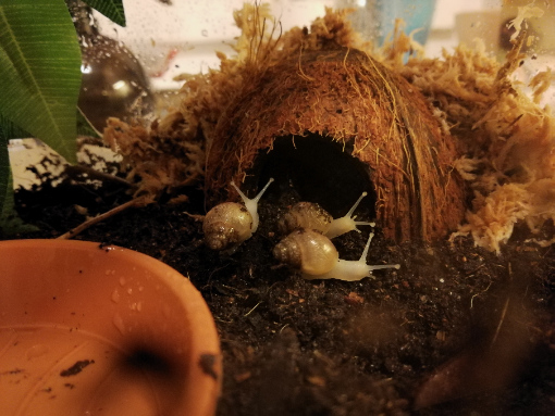 Ich halte seit kurzem 4 Achatina fulica Vollalbinos (hierzu nochmals danke für die Hilfe bei der Bestimmung hier im Forum!) und bin ganz vernarrt in die Kleinen. 8D