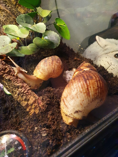 3 Lissachatina Reticulata und ihr erster Nachwuchs.