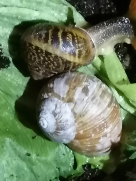 Aktuell hab ich noch eine große Weinbergschnecke die bei Baggerarbeiten ausgegraben wurde, die darf jetzt auch wieder raus