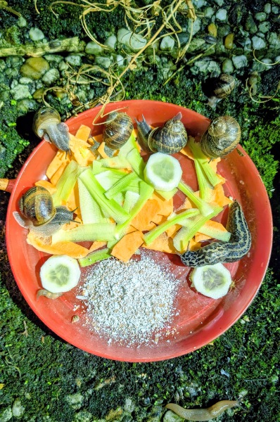 Ich würde auch gerne Weinbergschnecken verpflegen, aber die gibt es hier nicht.