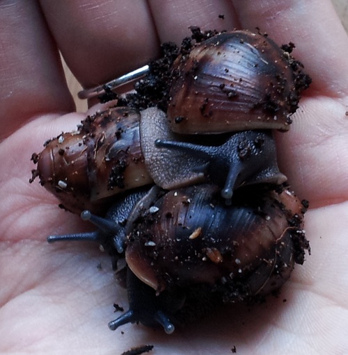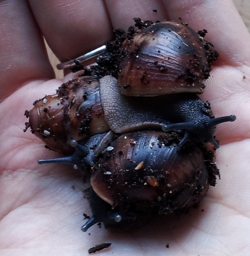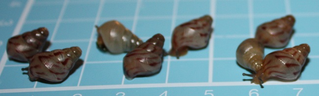 Vielen lieben Dank für eure netten Worte! Ich hätte mir die eduardi gar nicht unbedingt ausgesucht, wenn mir die Eier nicht angeboten worden wären... es gibt bei den Archachatinas einige Schneckenarten, die ich mir viel eher ausgeguckt hätte, aber diese kleinen Kobolde haben es mir jetzt wirklich so richtig angetan. Seit dem Umzug aus der Box ins Terra sitze ich dauernd davor. Die meiste Zeit schlafen oder fressen sie und raspeln Kalk, sie haben aber auch schon neugierig jeden Winkel des Terras erkundet - Mensch, sind die schnell