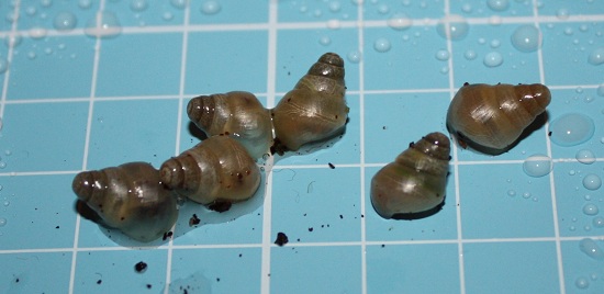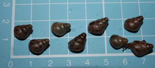 Aus den verbliebenen Eiern ist natürlich nichts mehr geschlüpft, was mich aber wundert: ich habe nur noch eines wiedergefunden! Ich habe die Erde in der Box etliche Male durchforstet und wirklich nur eines gefunden. Ob die Geschwisterchen das gefressen haben? Das eine Ei, das ich gefunden habe, geöffnet. Drin war ein kleines Schneckenhäuschen, halb rosa und halb beige gefärbt - und definitiv leer
