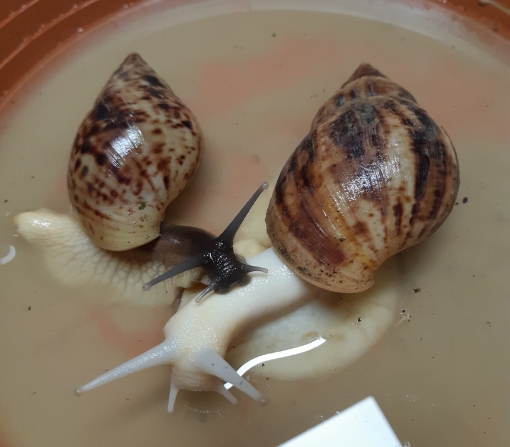 Und dann.... ja dann geht es bald los, das mein sieben Jähriger Junge bei seinen Schnecken auf Eiersuche gehen muss. Denn sein Rufus ist Geschlechtsreif. Allerdings hat die Zweitgrößte Schildi noch kein Anzeichen am Hals. Aber sie sind ja gleichaltrig...