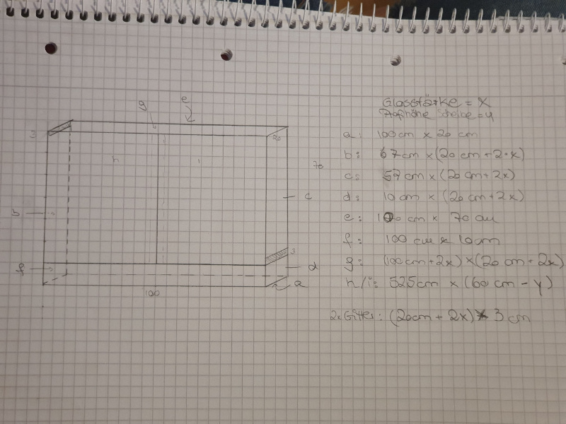 Es soll sehr schmal werden, da die Kommode nur 21 cm tief ist. Dafür aber 100 cm lang und 70 cm hoch. Wenn meine Limis irgendwann mal Nachwuchs haben, können die, die ich nicht behalte, dort aufwachsen.