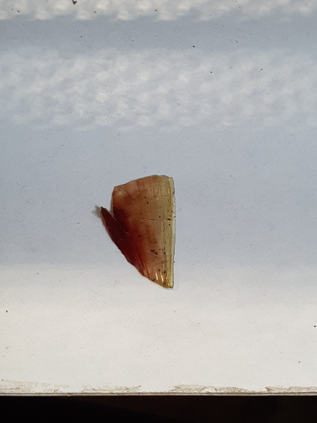 Heute morgen hab mich mich erst gewundert, warum die Schnecke am Haus auf eimal eine Macke hat. Etwas später hab ich das fehlende Stück neben der Wasserschale gefunden. Da ist wohl jemand von der Decke geplumpst. Aber so hauchdünn, wie der Rand ist, ist es kein Wunder, das was abgebrochen ist. Macht nix, wächst nach. Es is aber interessant sich so ein Stück mal genau angucken zu können.