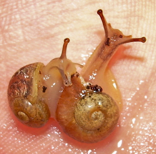 Ich habe 3 Baby-Schnecken mitgenommen und noch ein Ei (das restliche Gelege wurde eingefroren)
