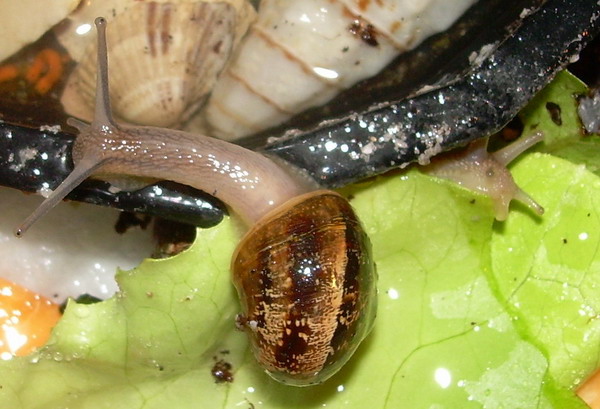 eine kleine Helix aus der Schule - also habe ich jetzt 5 Schnecken und ein Ei.