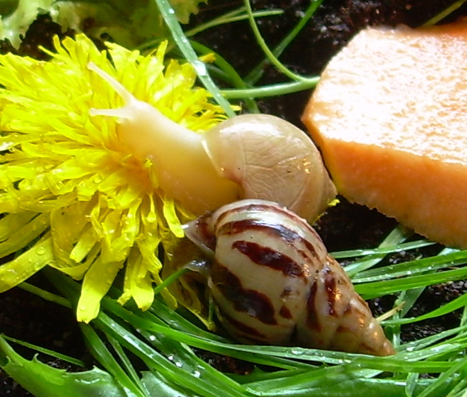 Die Schnecken haben das neue Terrarium direkt gut angenommen,