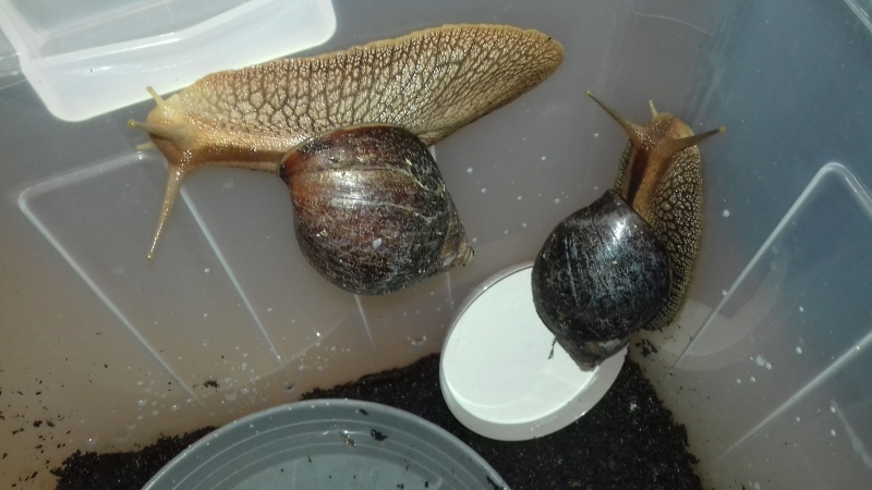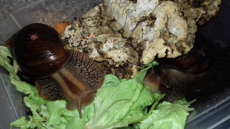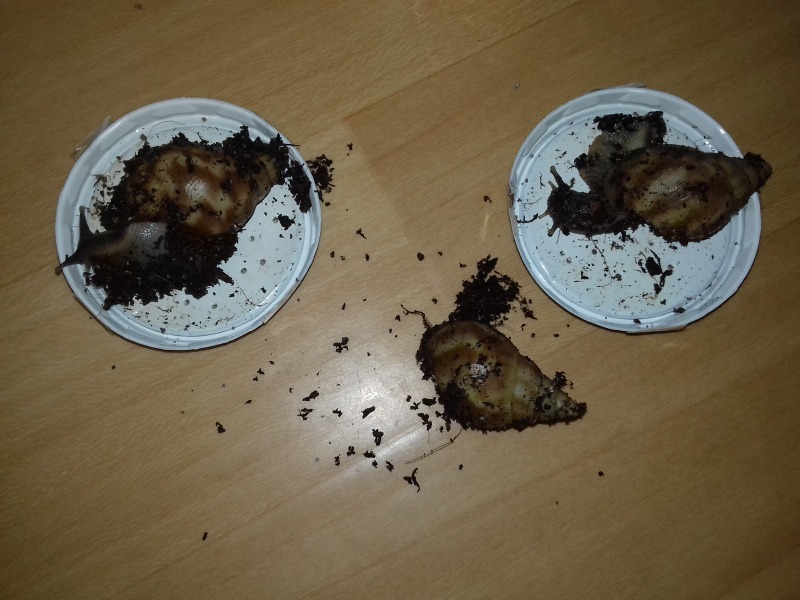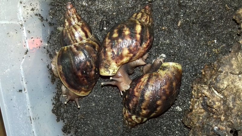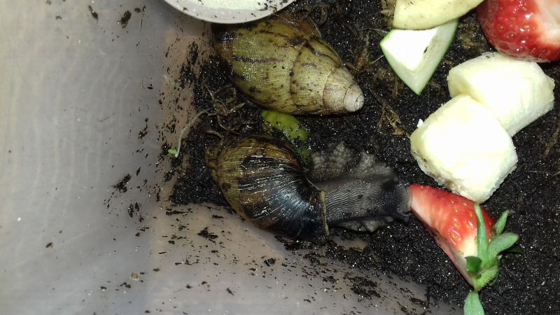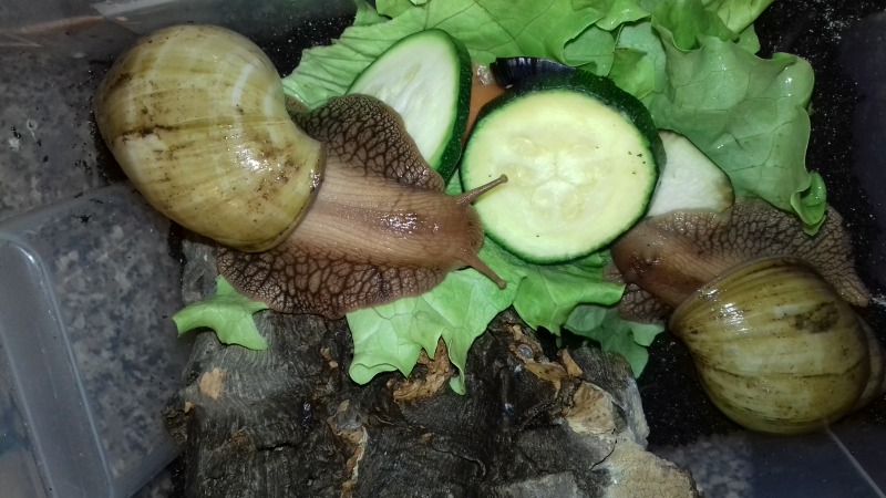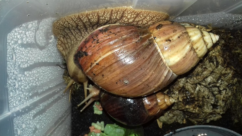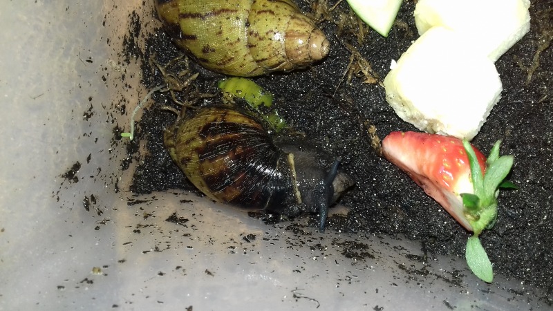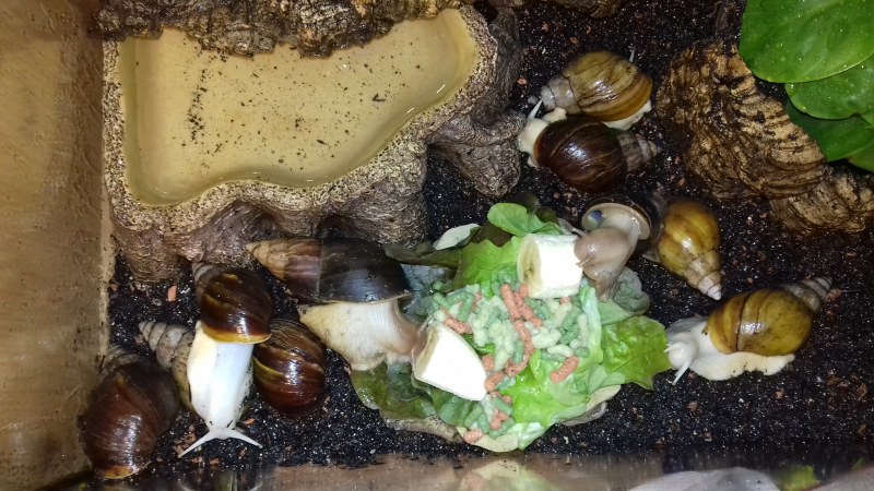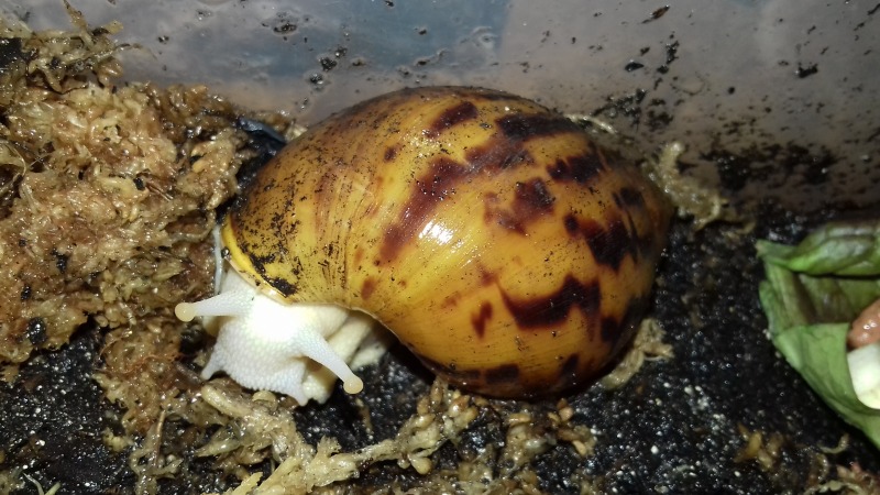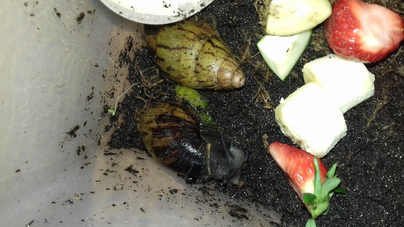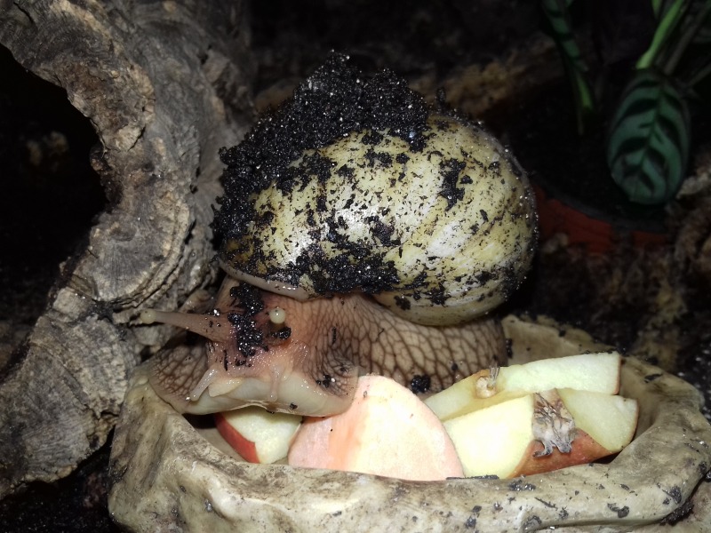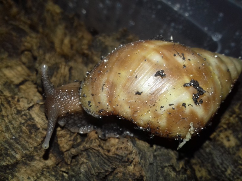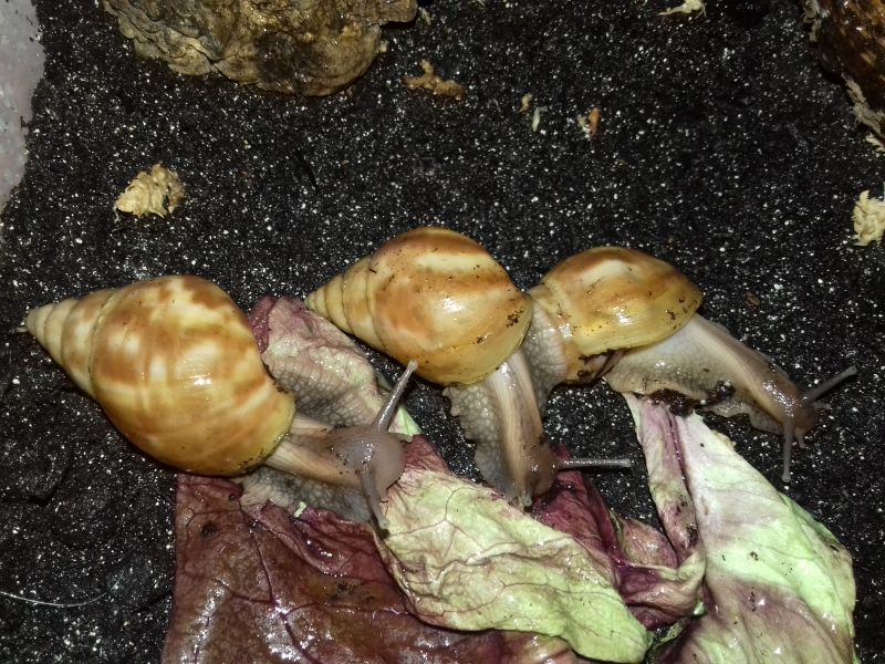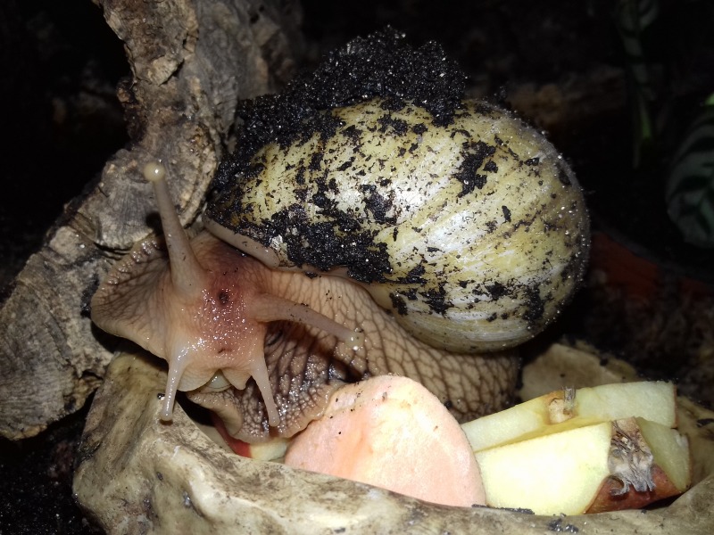 Dafür zogen einige neue Schnecken hier ein, da mit meiner Haltung nun endlich alles zu passen scheint. Das zeigten mir auch die drei neuen Lissachatina albopicta, die ich seit ein paar Monaten habe. Viel fitter und schöner gewachsen als Cora und Crazy früher.