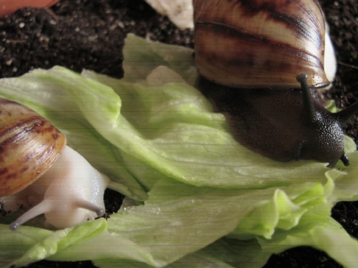 Hier ist eine von ihnen, die andere hat sich gerade im Salat vergraben und schmatzt vor sich hin: