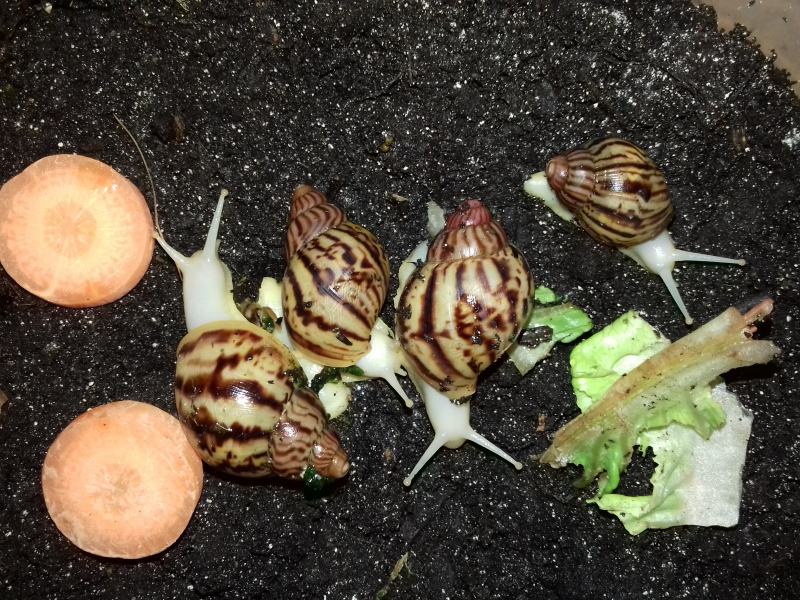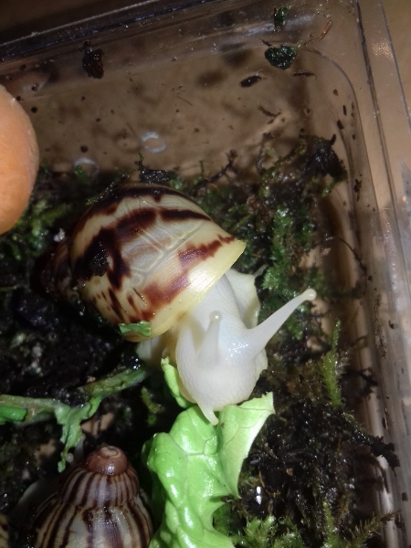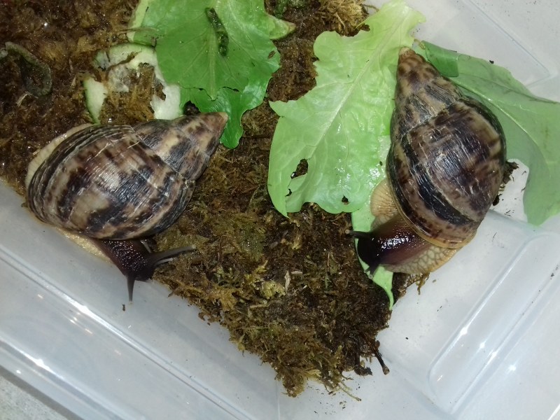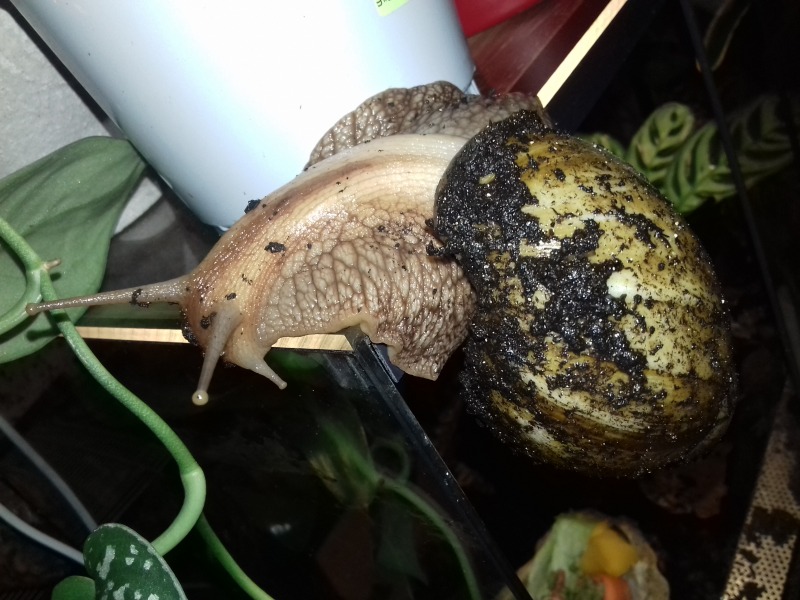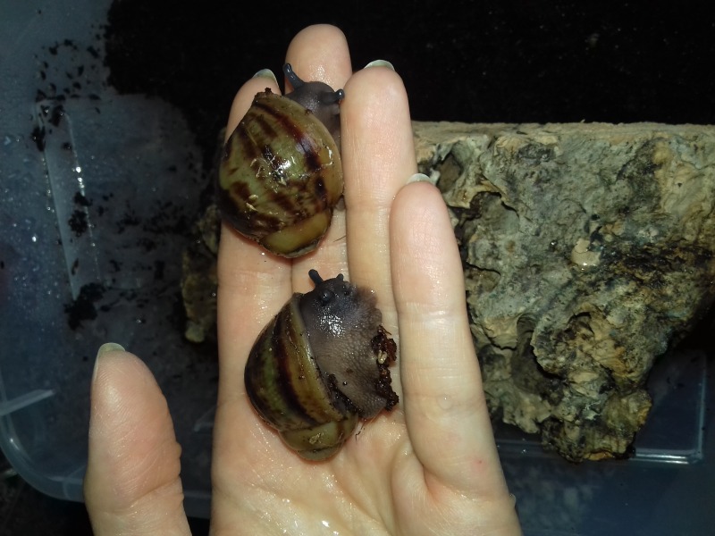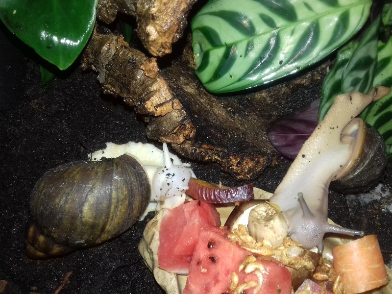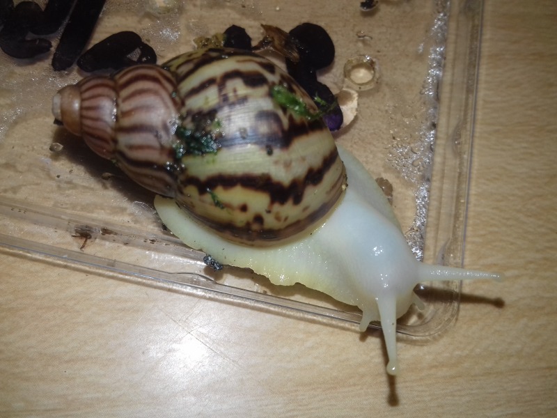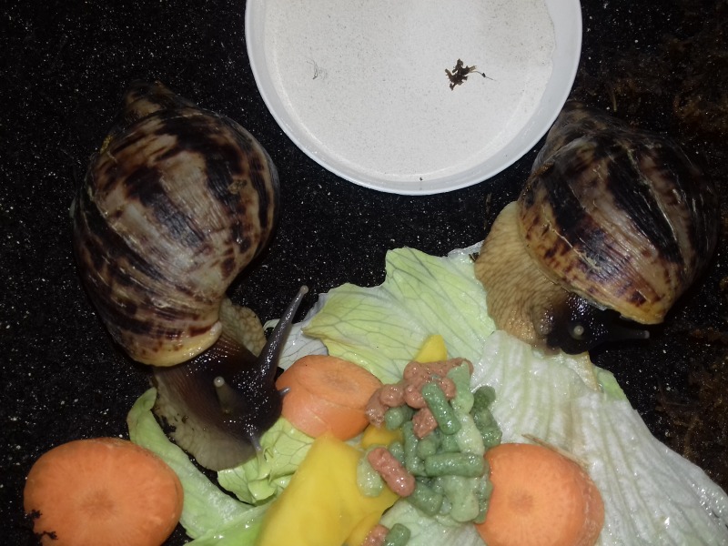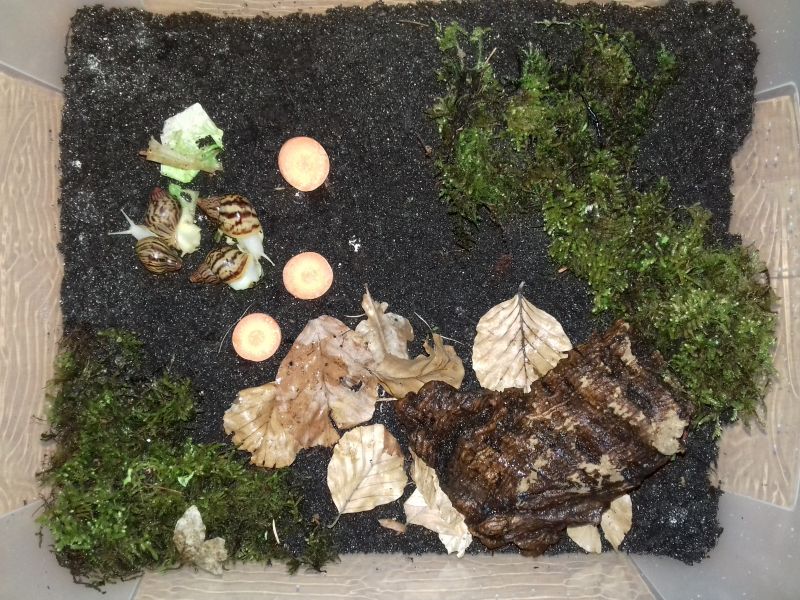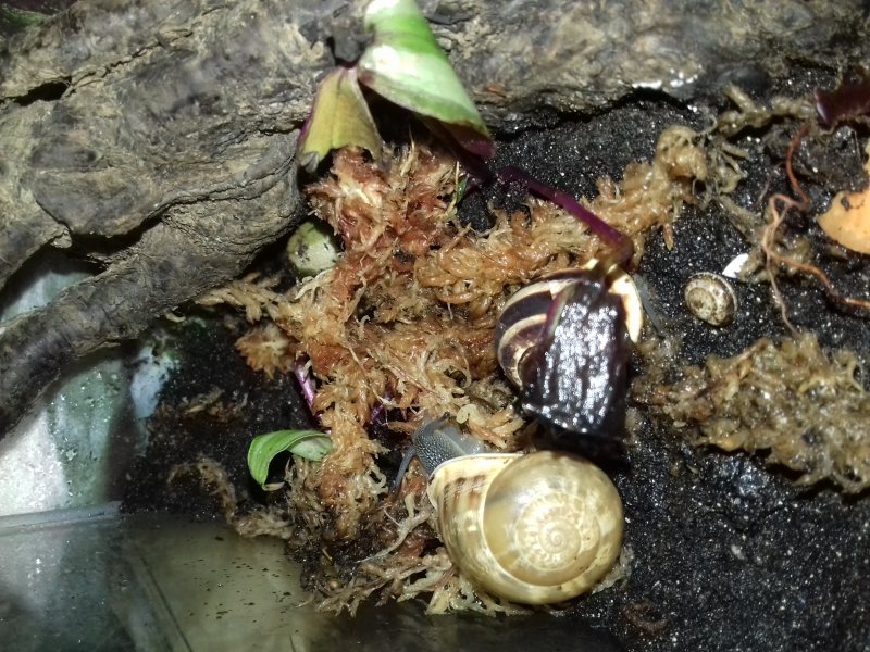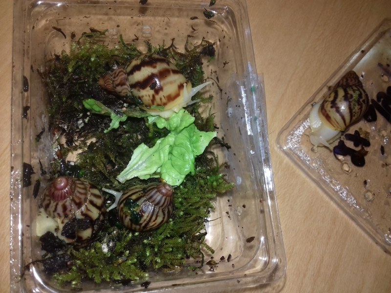 Als nächstes zogen hier ein paar Findelschnecken ein, die alle im Salat gefunden wurden. Ich finde es total schön, dass es noch Menschen gibt, die sich so eine Mühe machen. Dass sie die Schnecken liebevoll versorgen und ihnen ein Zuhause suchen, statt sie raus zu tragen, ohne die Art zu hinterfragen, oder nach dem Deckel des Mülleimers zu greifen. Es zeigt einfach, es gibt noch feinfühlige, nette Menschen.