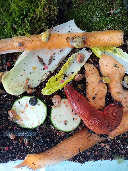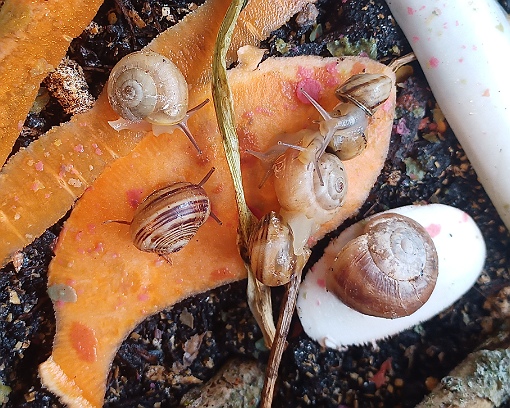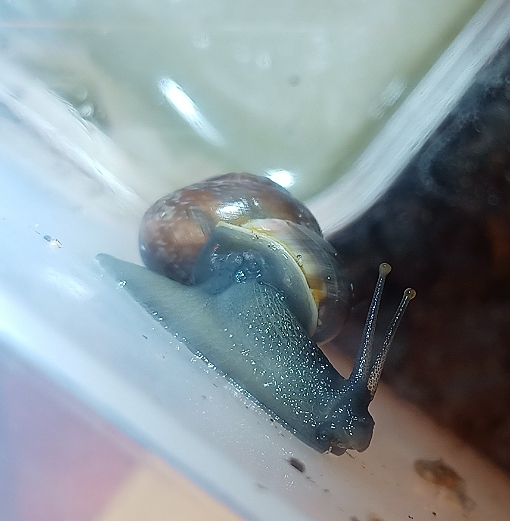 So gabs für die Nacktis und die jungen Bänderschnecken auch eine neue Box. Blob hat inzwischen eine Hammerfarbe, sie ist wirklich so grell orange wie auf dem zweiten Foto