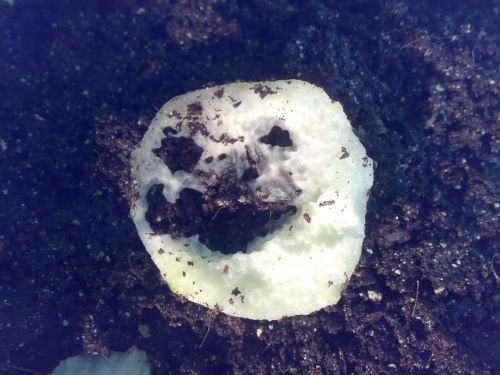 ...in Ermangelung von Kürbissen mussten sie eben ein Gesicht in eine Gurkenscheibe fressen!