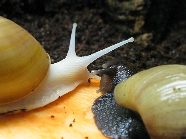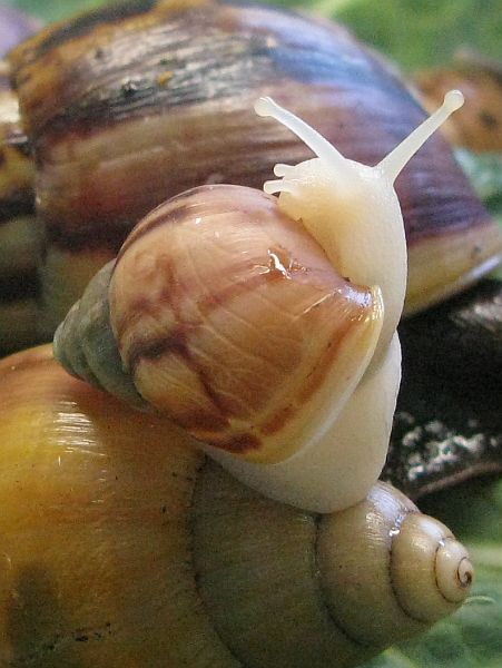 Der Weißschleier auf den Fotos kommt daher, dass durch die Scheiben fotografiert wurde. Aquarienschnecken sind irgendwie einfacher zu fotografieren als Terrarienschnecken
