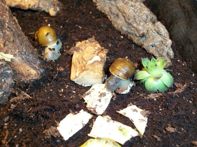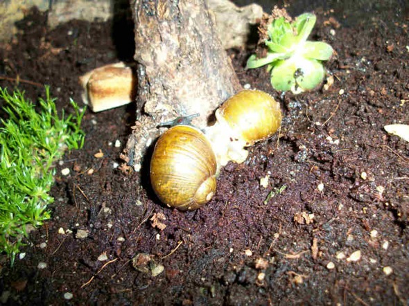 Gleich nach der Einrichtung des Terras kamen Karin's 2 Grunzschnecken an!