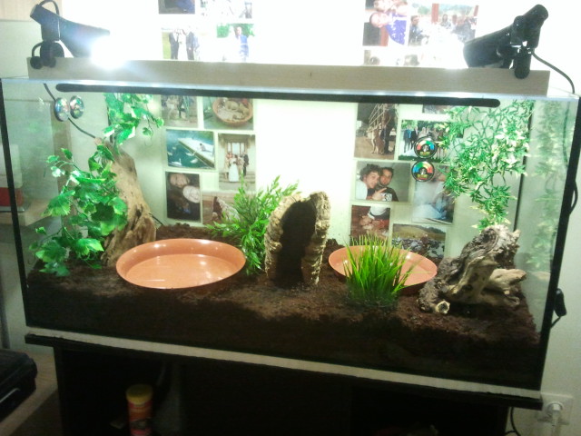 Gestern über Nacht, habe ich das Aqua geschlossen ohne Beleuchtung stehen gehabt und heute in der Früh hatte ich in der rechten Ecke wo die Wasserschale steht knapp 26° und knapp 90% Luftfeuchtigkeit.