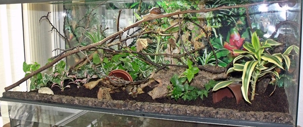 Heute kamen noch ein paar Äste hinzu, da die Höhe des Terras sonst gar nicht von den Schnecken genutzt werden kann. Ganz optimal ist es nicht, aber schon besser und es schaut gleich natürlicher aus, besonders mit den schönen Flechten.