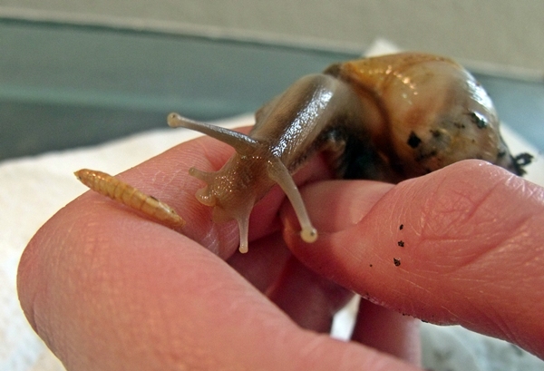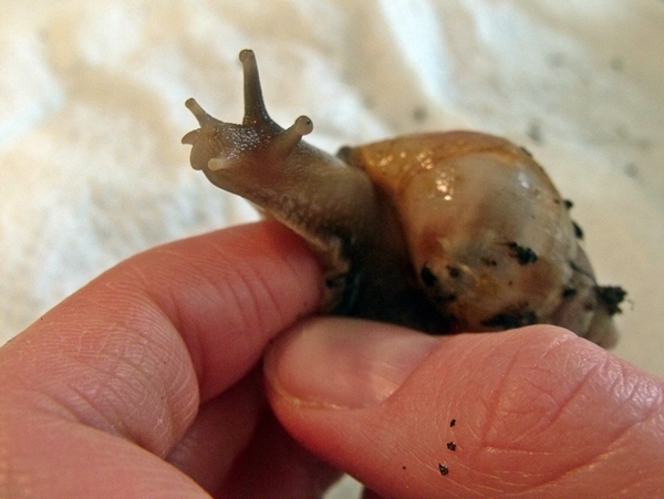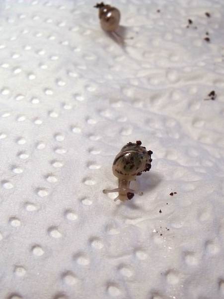 Henry und Magdalena haben ihre Namen von den beiden Hauptprotagonisten aus Kokowääh. Henry ist die größte meiner vier Rodatzii und eine sehr entspannte Schnecke, die sich nicht mal zurückzieht, wenn ich ihn anhebe. Magdalena ist die sensibelste (ängtlichste?) von allen, denn sobald sie angehoben wird, zieht sie sich ein und gibt diese Geräusche von sich, die entstehen, wenn eine Schnecke schäumt.