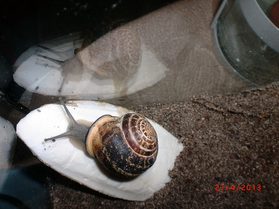 Du hast gut aufgepasst, da liegt im Terra ein Weinbergschneckenhäuschen (leer). Hatte mein Sohn vor zwei Jahren im Schulbiologiezentrum gefunden.