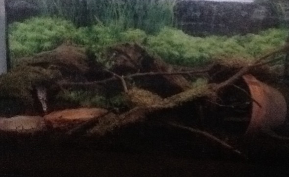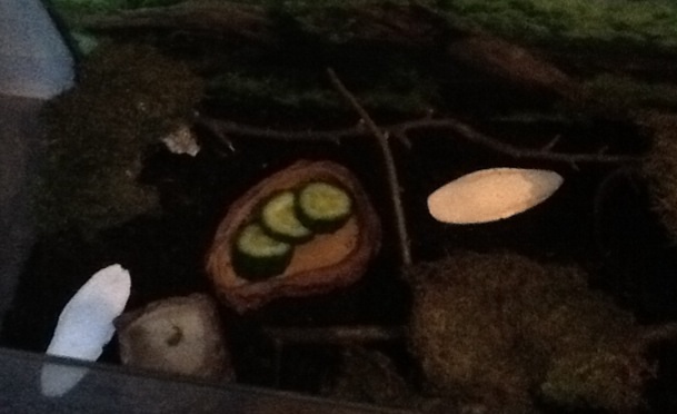 Aber jetzt habe ich mir eine Schlafkautsch geholt und meine Mama fand der Tisch neben meinem Bett soll genutzt werden um dadran zu sitzen! Also steht das Terra an meinem fußende! Auf meinem roten Regal. (Foto folgt) Und ich habe mir eine Pflanze zugelegt die aber innerhalb vier Tagen angefressen wurde!