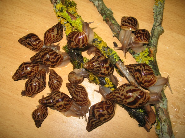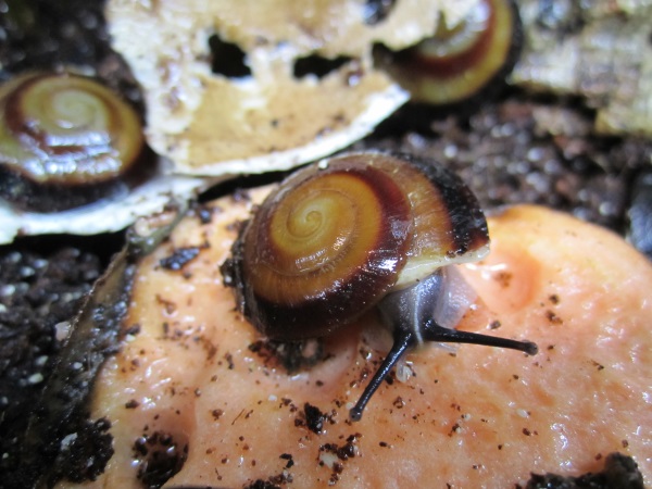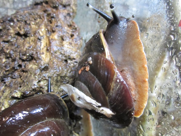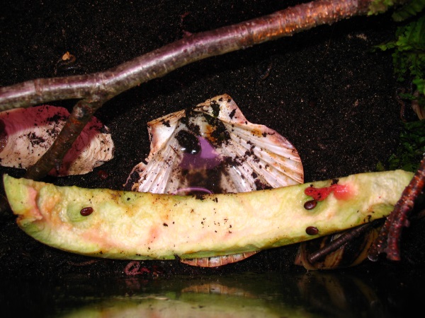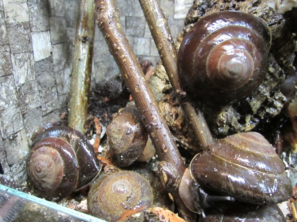 Es gibt auch noch andere Neuzugänge. Einmal sechs Caracolus sagemon. Sie sind tagsüber immer wieder am glupschen und noch etwas vorsichtig. Aber Nachts sind sie sehr aktiv und munter am Fressen. Anfangs hingen sie mehr unter den Ästen, und seit heute Morgen hocken sie nur noch im Futter
