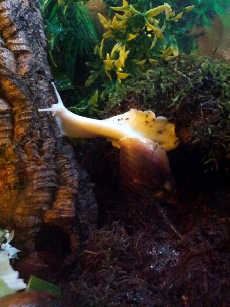 Ich habe in Ulm eine supersüße VA fulica gefunden, die ich natürlich sofort mitnehmen musste. Sie ist schätzungsweise 2 Monate alt und hat schon rausgefunden, wie toll es ist von den Großen durch die Gegend getragen zu werden.Was mich gestern total überrascht hat war, dass meine Snow White tatsächlich Annäherungsversuche an meine dicke Berta gestartet hat! Da habe ich doch tatsächlich hinten am Kopf was zum Schneckseln hervorkommen sehen! Und ich hatte gehofft, dass das hat noch ein paar Monate Zeit hat ^^ Die "Großen" sind ja jetzt auch erst 4,5 Monate alt. Die dicke Berta hat sich recht unbeeindruckt gezeigt, von daher muss Snow White ihre Avancen wohl noch ein bisschen fortführen.