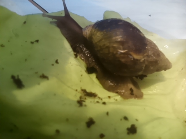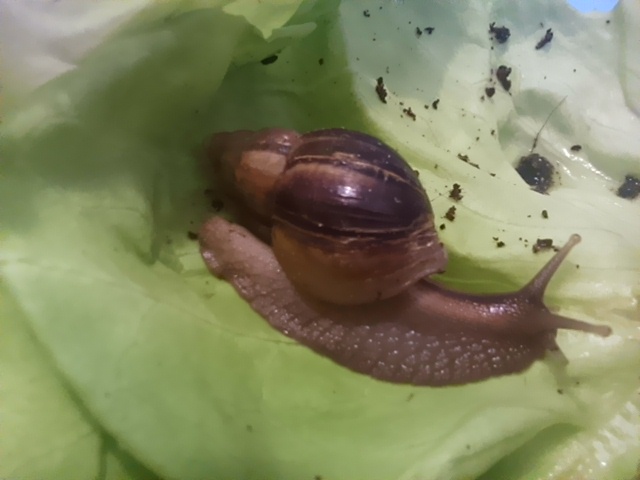 Sie machen mir viel Freude und ich liebe sie und auch meine ganz kleinen Schneckenbabies fressen und wachsen nun und ich freu mich immer , wenn ich sie mal erwische oder Grosse Frassspuren sehe , dann weis ich , das alles okay ist . Heute hab ich sie mal kurz raus und genau angeschaut , aber tatsächlich alles gut und so niedlich .