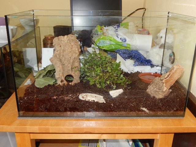 in der Mitte ist eine grosse Golliwoog Pflanze, in das Eck links vorne kommt noch jede Menge Moos, das ist im Moment noch in der Fauna-Box mit der ich sie abholen werde.