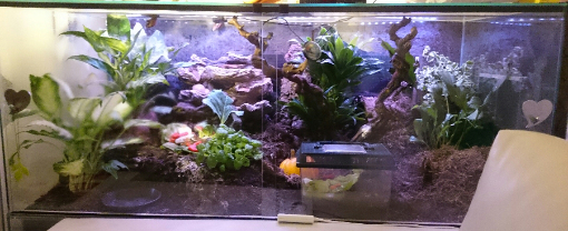 Kann es sein, dass Du auf der linken Seite zwei Dieffenbachien hintereinander stehen hast? Sollten das wirklich welche sein, dann nimm sie bitte aus dem Schneckenbecken, dieffenbachia hat einen weißen und giftigen Saft.....sehr unangenehm für Mensch und Tier!