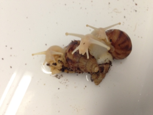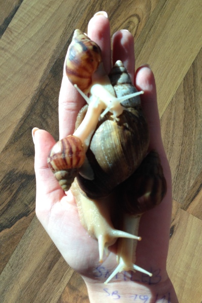Da gerade die Achatina fulica schon lange und viel im Terrarium "rumschleimt"... und die verschiedenen Varianten sicher schon untereinander gekreuzt wurde, denke ich, dass die verschiedenen Varianten der Art im Terra so gar nicht mehr zu finden sind.