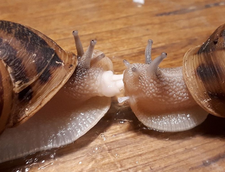 Auf dem ersten Bild, von unten, sieht man schön, dass der erste Liebespfeil nicht getroffen hat und unter der rechten Schnecke liegt.