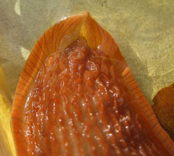 Und wieder gab es einen großen Perlpilz im Garten. Horst bekam die Hälfte, die andere Hälfte wurde unter 15 anderen Schnecken aufgeteilt. Tja, und Horst hat sein riesiges Stück in einer Nacht geschafft. Manchmal glaube ich, dass er eine Mutation ist. Seine Wampe erinnert schon an den Wolf mit den 7 Geißlein, oder?